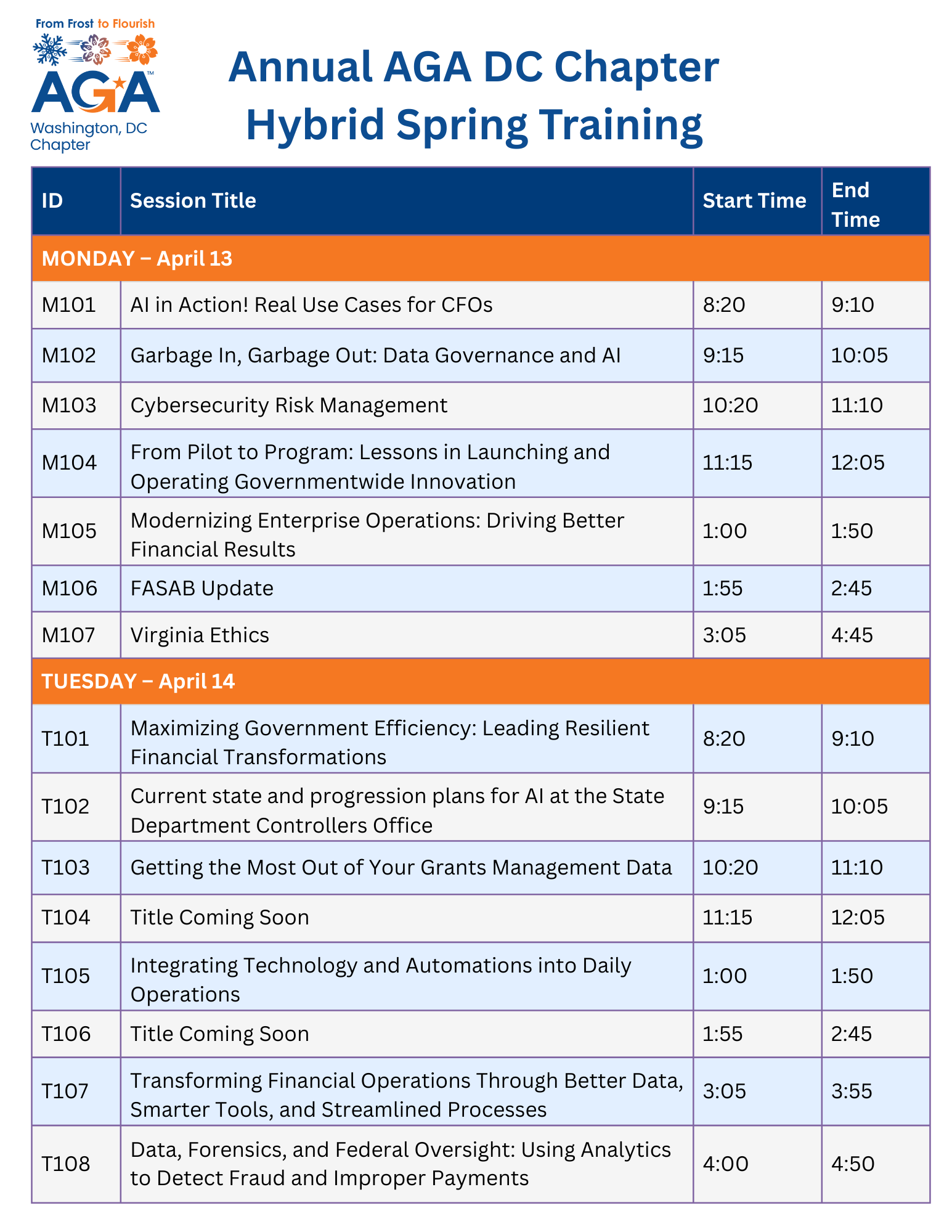 Sign up now for the Annual DC Chapter Spring Training event scheduled for Monday, April 13, and Tuesday, April 14, 2026. We are back at the same location as last year, the Convene Hamilton Square, 4th Floor, 600 14th Street, NW, Washington, DC 20005.